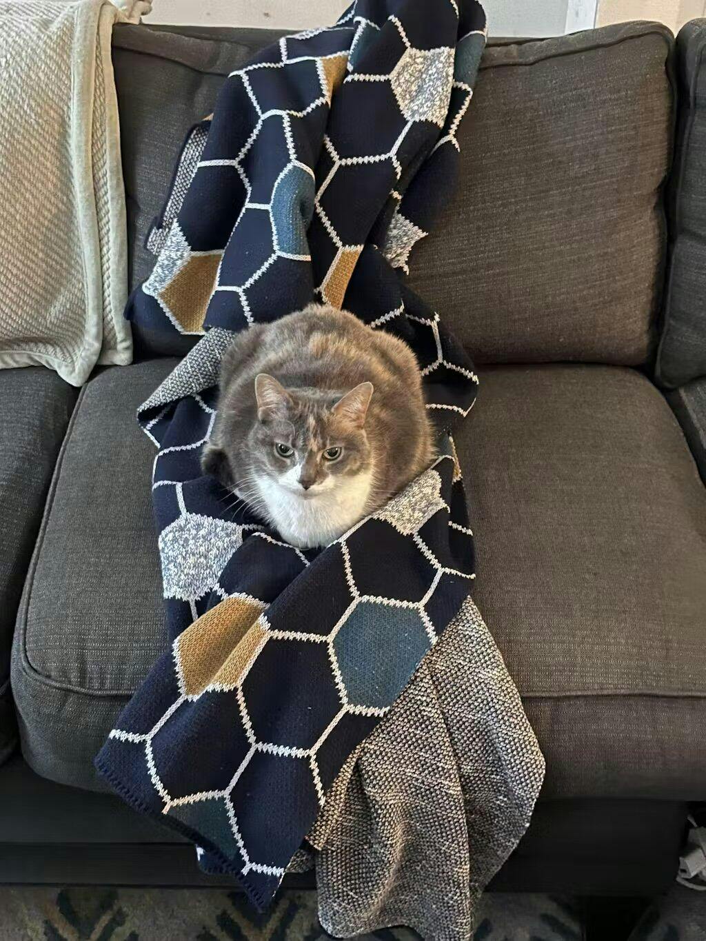 Cat approved comfy and handsome blanket.. I like it too! This won't be my last S&S throw.